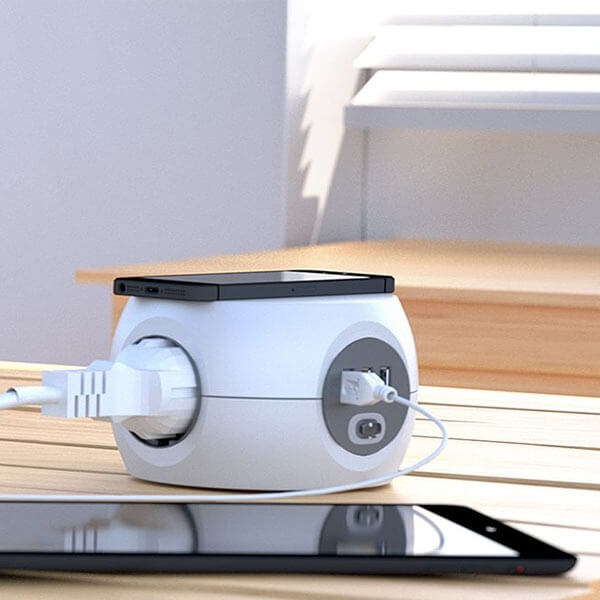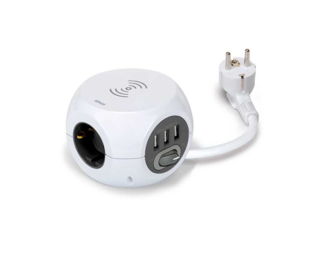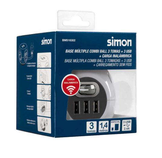 Base múltiple combiball 3 tomas 16A + 3 puertos USB 2,4A con carga inalámbrica 1A